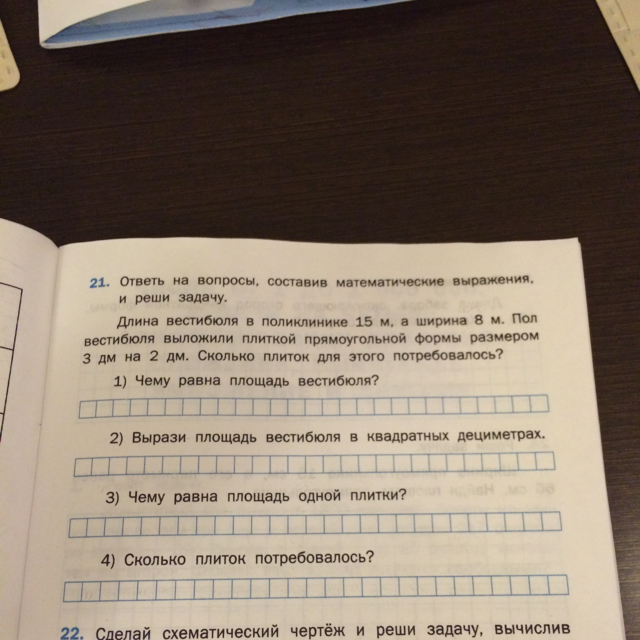 4) Всего 1200 дм², а одна плитка 6 дм² ⇒ 1200÷6=220 плиток понадобится