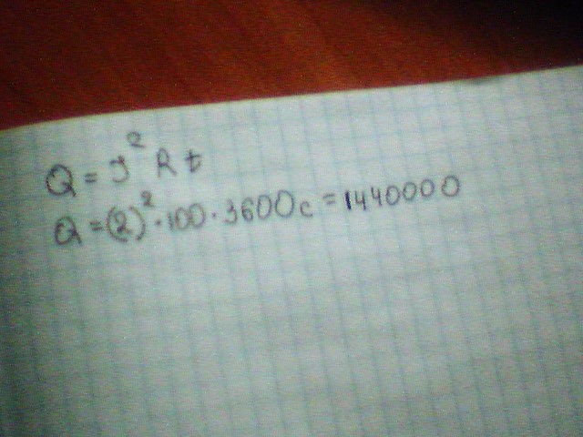 какое количество теплоты выделится за 1ч в реостате,сопротивление которого 100.Ом,при силе тока в цепи 2А