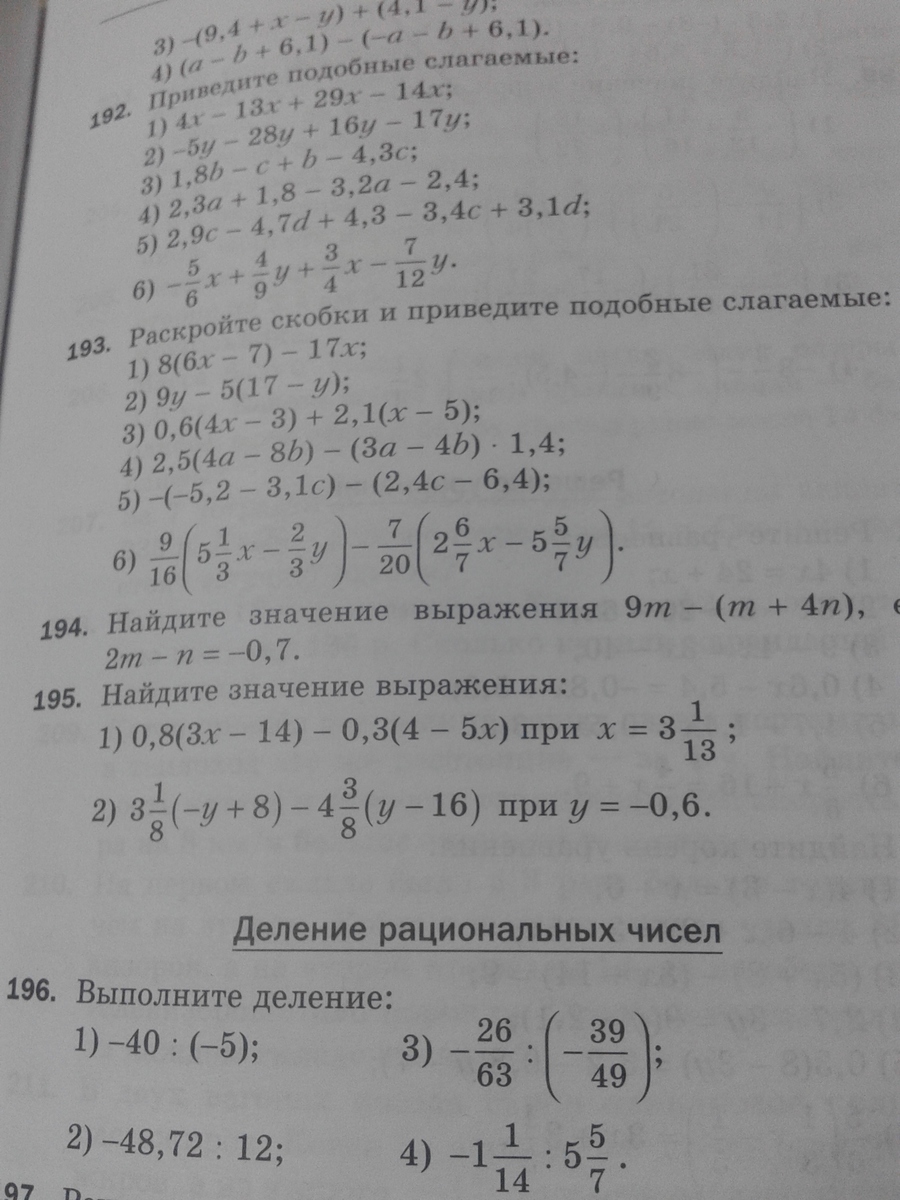 6) 9/16(5 1/3x-2/3y)-7/20 (2 6/7x-5 5/7y)=9/16*16/3-9/16*2/3y – 7/20*20/7+7/20*40/7y=3-3*1/8*1y-1+2y=3-3/8y-1+2y=2y-3/8y+3-1=16/8y-3/8y+2=13/8y+2=1 целая 5/8y+2