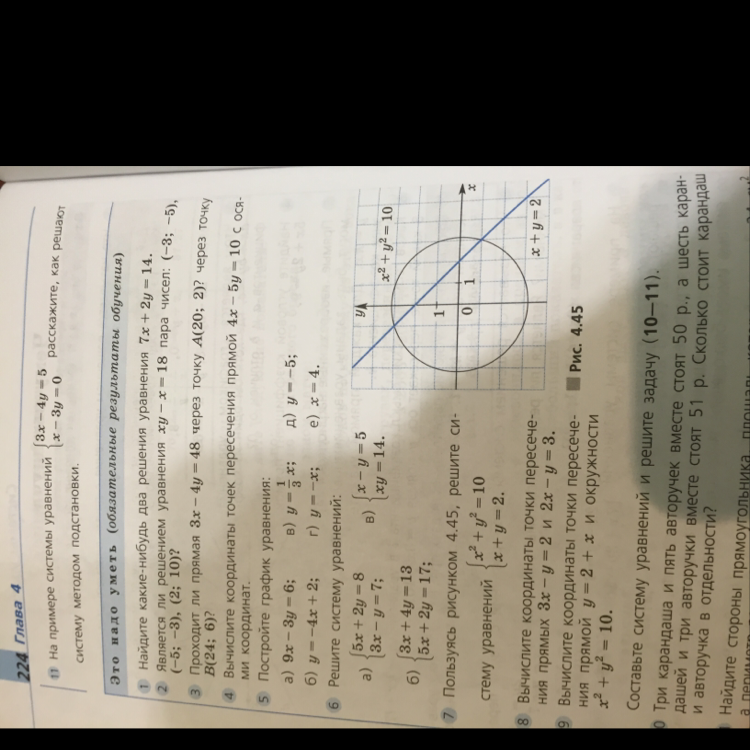 Пользуясь рисунком 4.45, решите систему уравнений (7)
