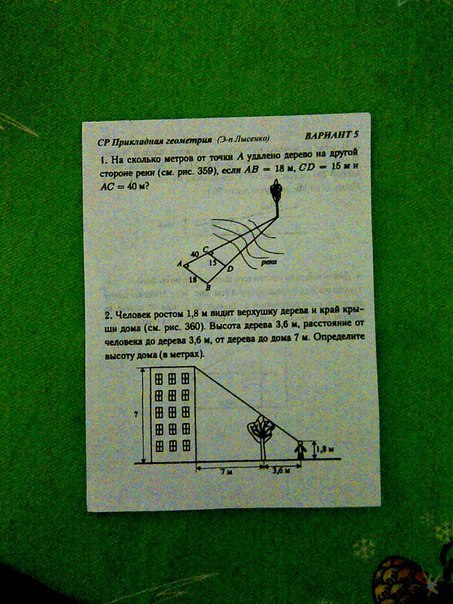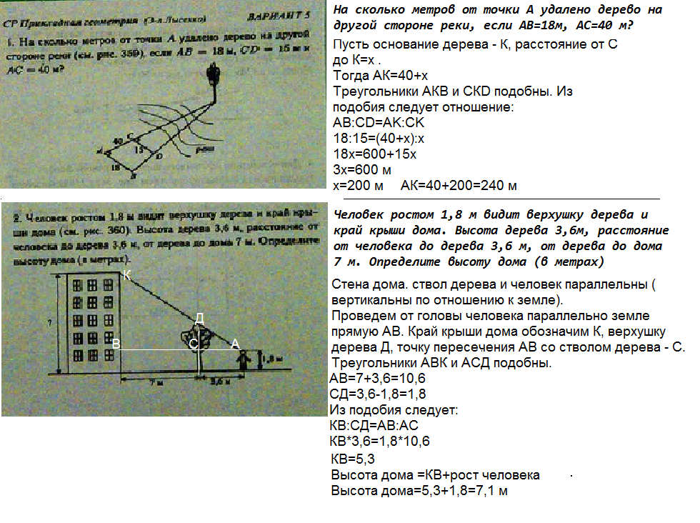 Задача №2. Треугольники получаем, проведя прямую параллельно земле от головы человека к дому.