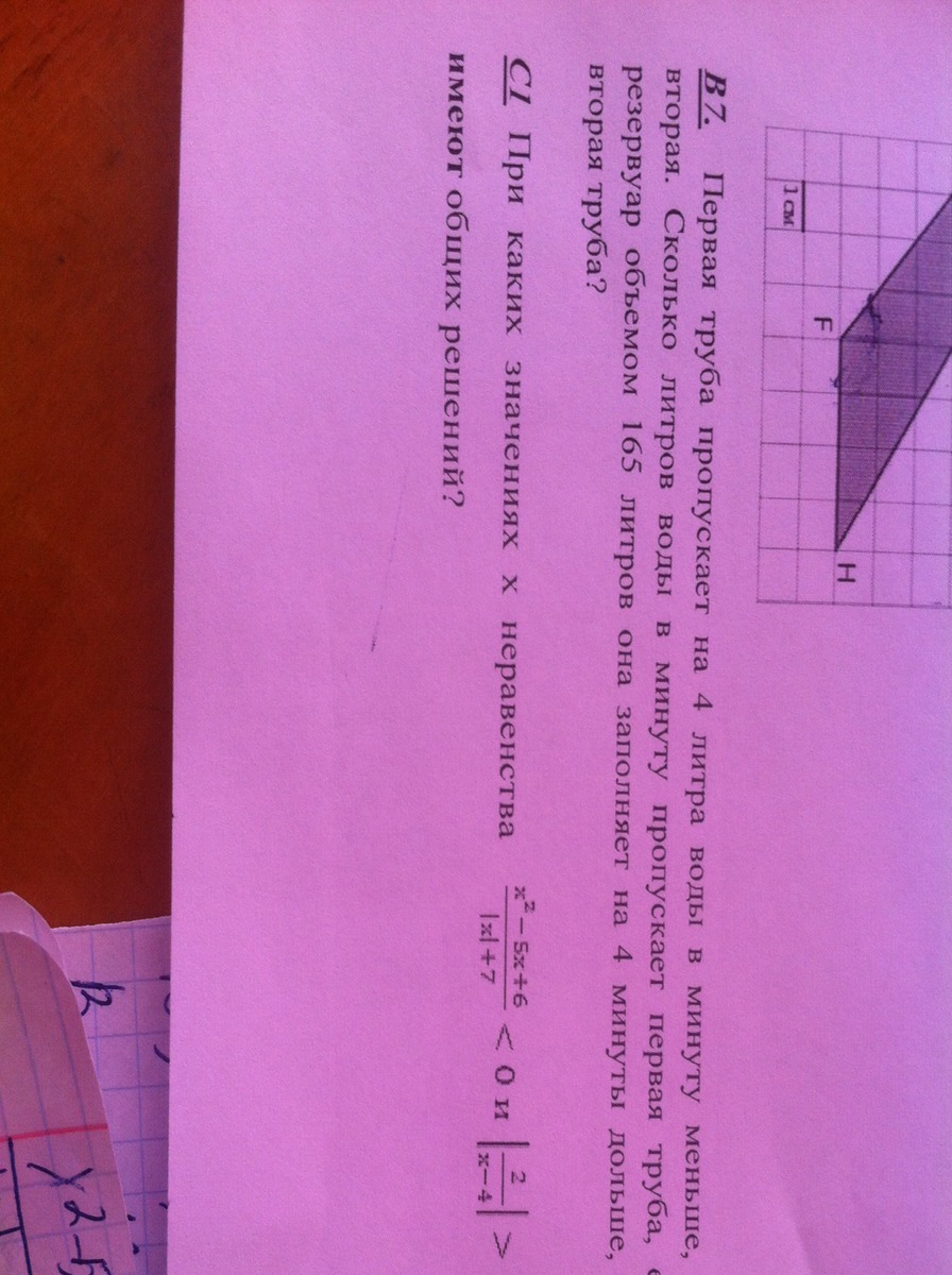 1 труба пропускает х литров воды в минуту , а вторая тогда (х+4) литров в минуту . 1 труба наполнит резервуар за 165:х минут , а вторая за 165:(х+4), т. К. По условию вторая труба заполнит резервуар на 4 мин быстрее, отсюда уравнение 165/х=165/(х+4) + 4.