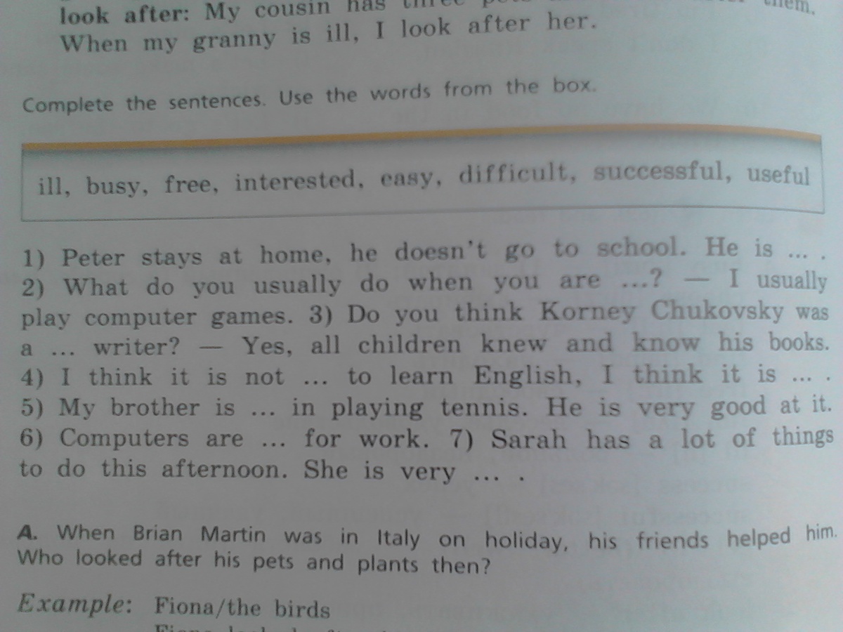 complete the sentences. use the words from the box