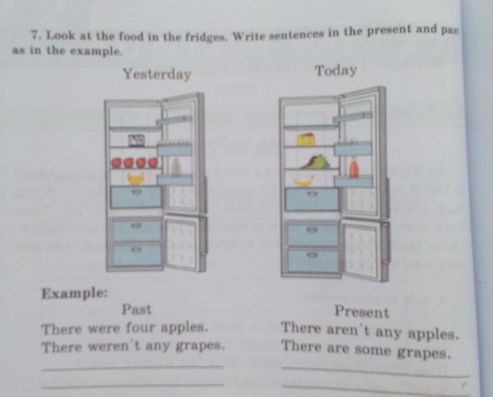 In this fridge were bananas, four apples and twenty eggs. There weren't bottle of juice or chocolate