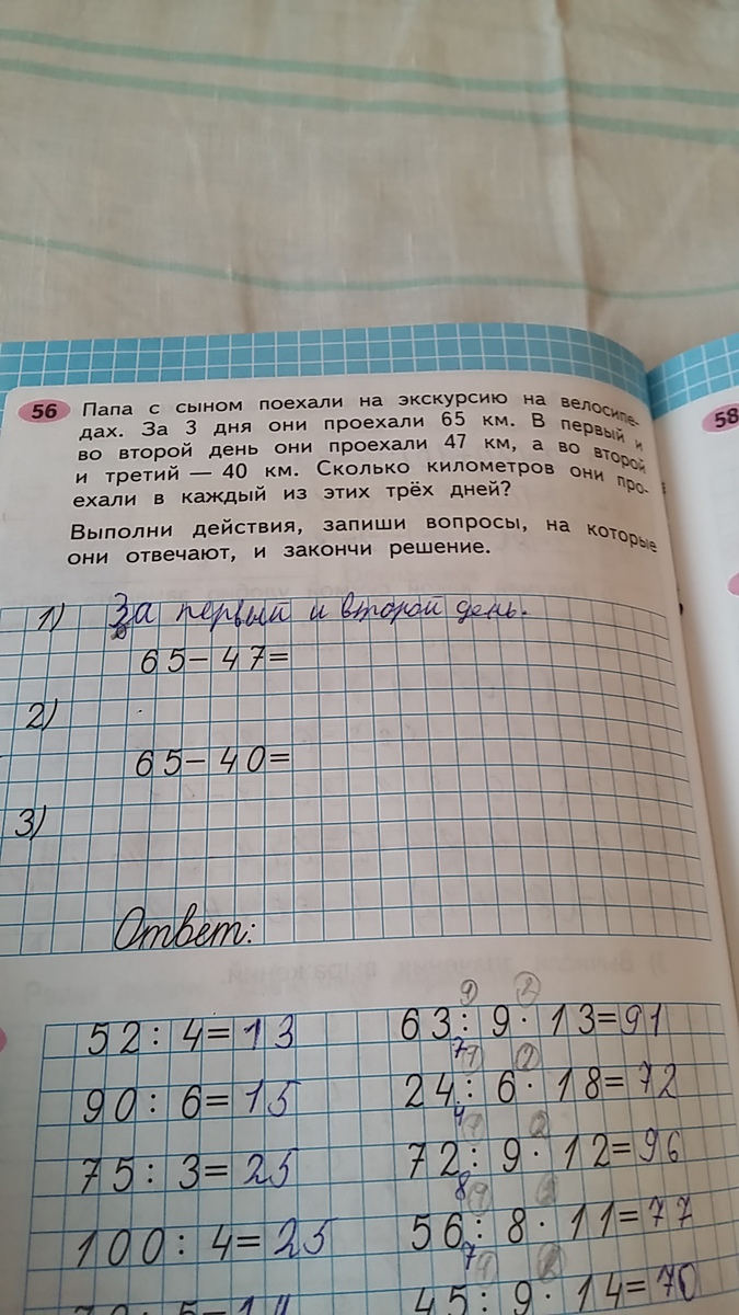 Проверка: 25 + 22 + 18 = 65 км. Все верно!