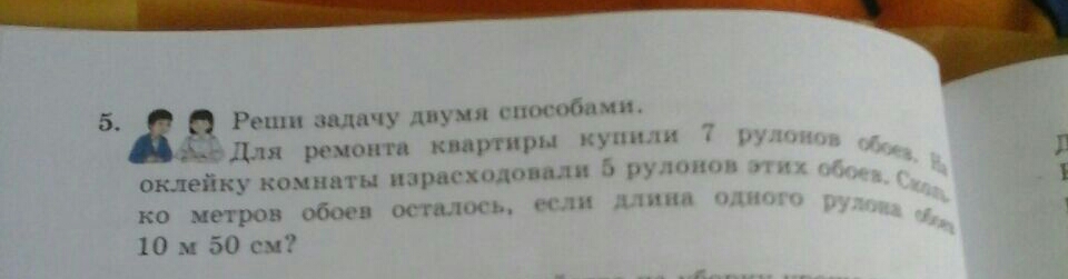 1)10,5×(7-5)=21 (м) - обоев осталось