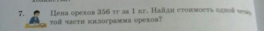 356/4=89 тенге - стоит 1/4 кг орехов