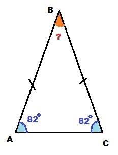 ∠В = 180° - ∠А - ∠С = 180° - 82° - 82° = 16°