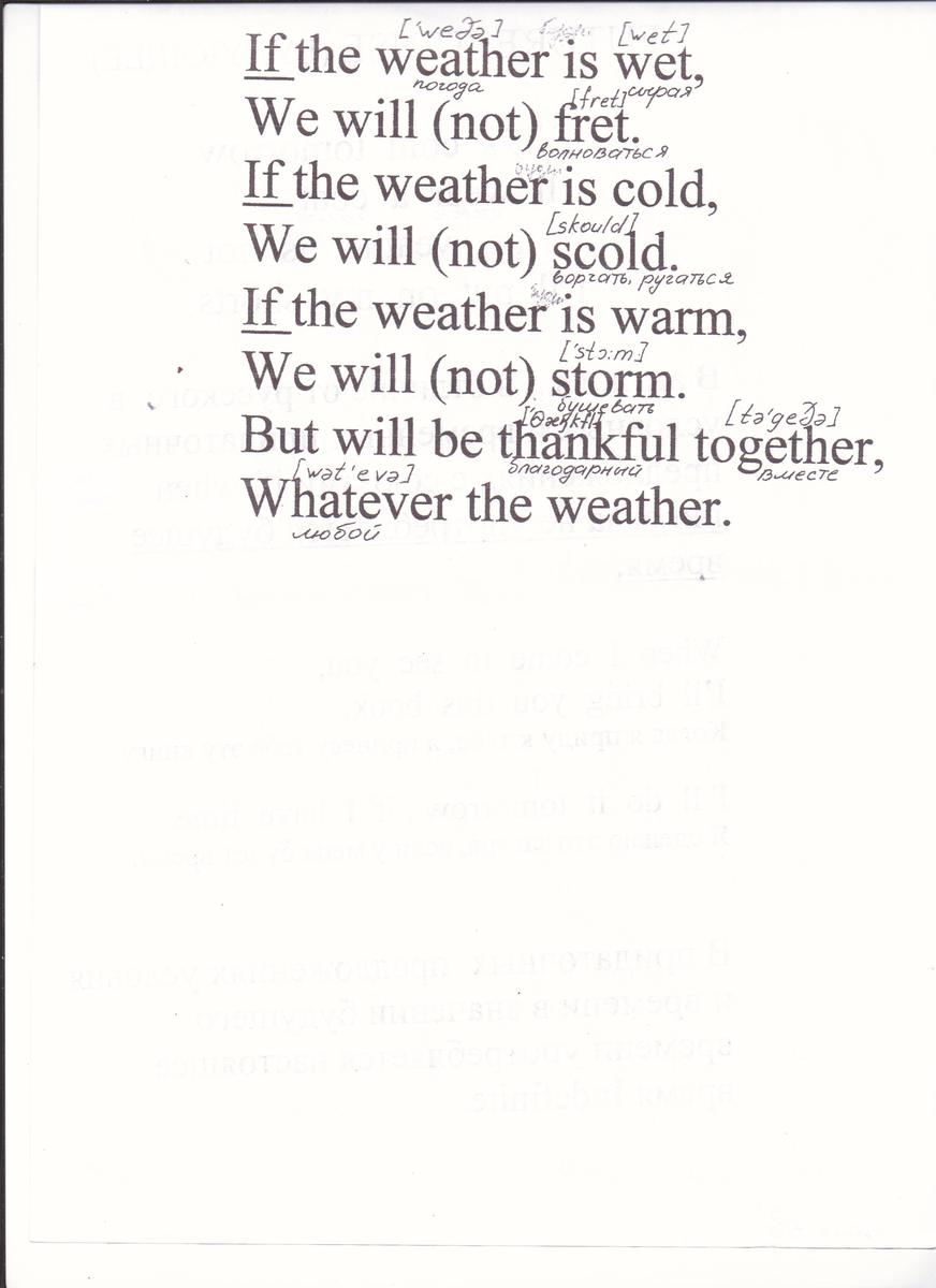 Смысл этого правила в том что если в предложении будущего времени есть предлог if,when(их гораздо больше но эти два встречаются чаще)то будущее время опускается.Получается предложение "делится" на две части:If the weather is wet I will not fret.Ecли погода будет сырая я не буду волноваться
