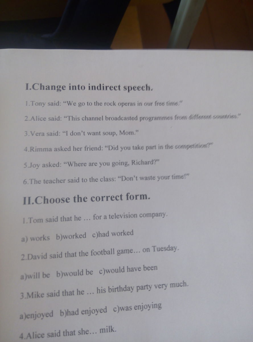 1.Tony said that they went to the operas in our free times. Alice said that channel had broadcasted programms from different countries.