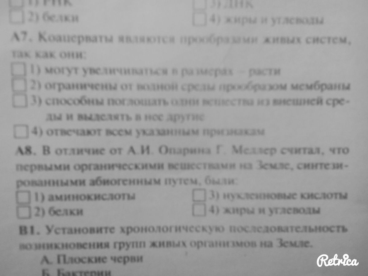 А8. В отличие от А.И.Опарина Г.Меллер считал, что первыми органическими веществами на Земле, ситезированными абиогенным путем, были: