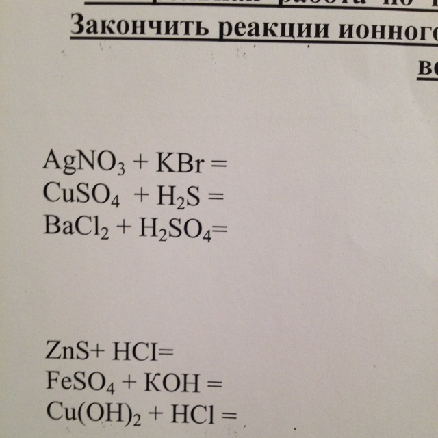 Реакция ионного обмена. Закончить реакцию ионного обмена, назвать все вещества