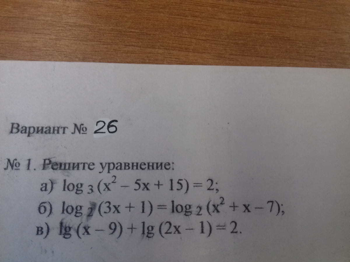 1)log3(x^2-5x+15)=2 ОДЗ:x^2-5x+15>0; x e R (D<0)