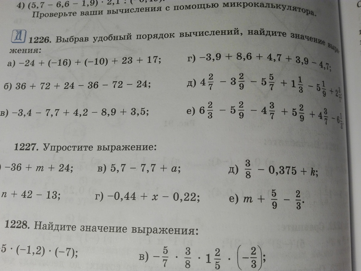 д)4 2/7+2 3/7-5 5/7-3 2/9-5 1/9+1 1/3= 6 5/7-5 5/7-8 3/9+1 1/3= 1-8 1/3+1 1/3=1-7=-6