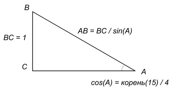 корень из 209/16 возможно,по тождеству синус в квадрате плюс косинус в квадрате равно 1.В тождество подставляем синус,вырожаем косинус,косинус равно под корнем из 15/4 во второй минус 1 во второй и решаем.)))))п.с. 15/4 во второй минус 1 во второй там все это вырожение под корнем))