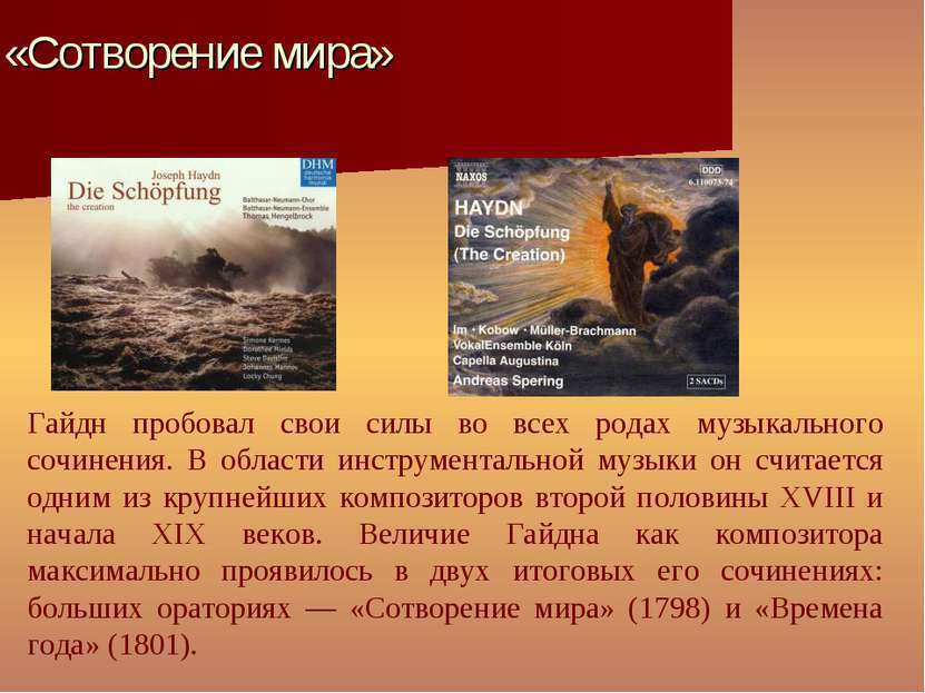 "Сотворение мира" и "Времена года" это жанры больших ораториях.
