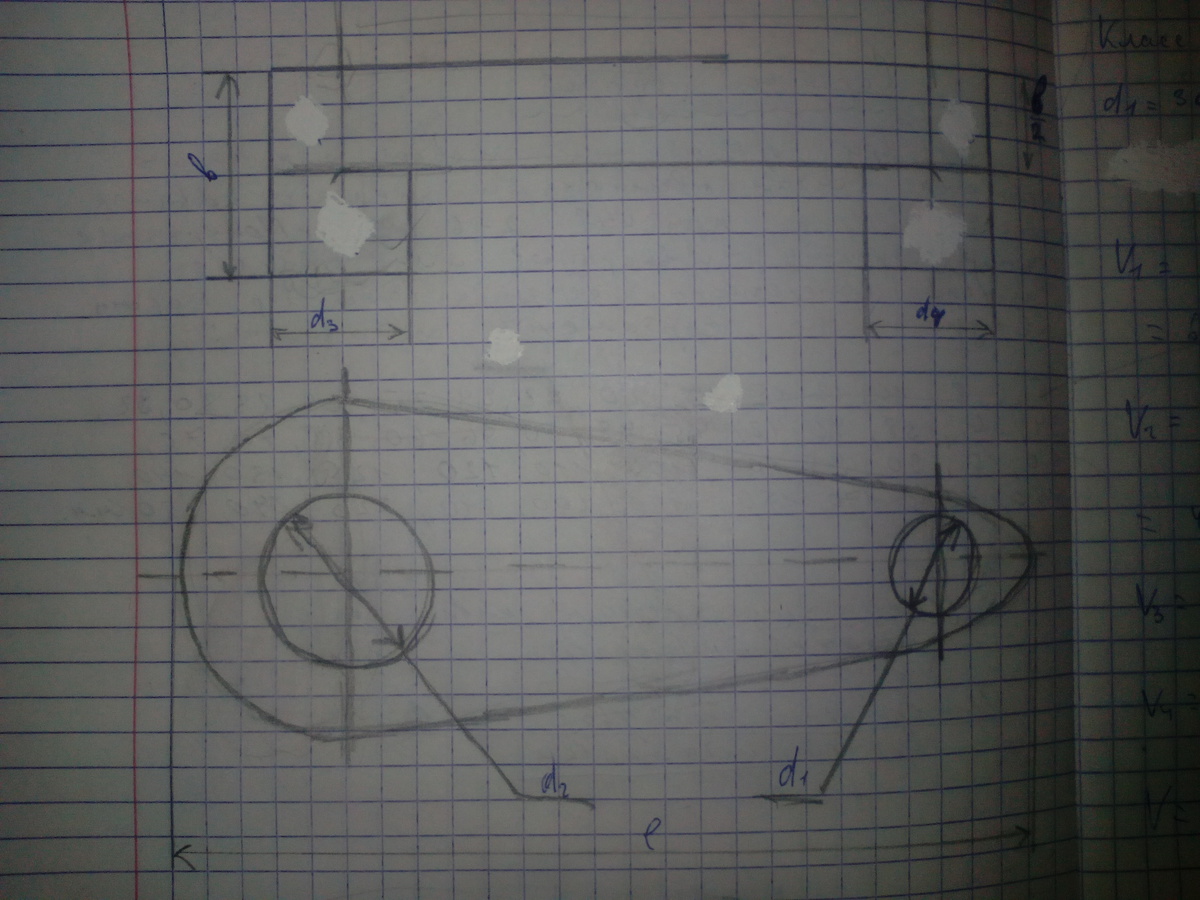Как найти объем всей фигуры изображенной на фотографии. На фотографии изображена одна фигура в двух видах! Исходные данные: d1=30мм ; d2=60мм ; d3=120мм ; d4=100мм ; b=110мм ; l=400мм