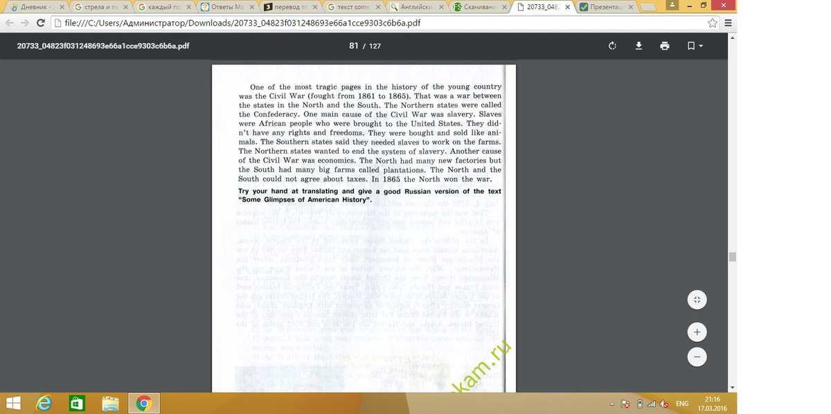 У них не было никаких прав и свобод. Они были привезены и продавались, как животные. Южные штаты говорили, что им нужны рабы для работы на фермах. Северные штаты хотели покончить с системой рабовладения. Другая причина Гражданской войны была экономическая. У северных штатов было много новых фабрик, но Южные штаты имели огромные фермы, называемые плантациями.