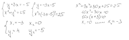 х^2+у^2=25 x^2+(-5-3x)^2=25