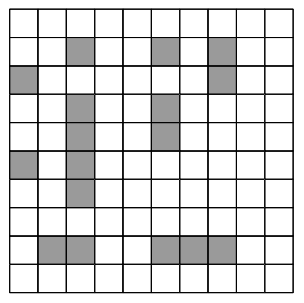 Сколькими способами можно поставить корабль размера 1x3 на приведенное поле для морского боя так, чтобы у него не было общих точек с другими кораблями?