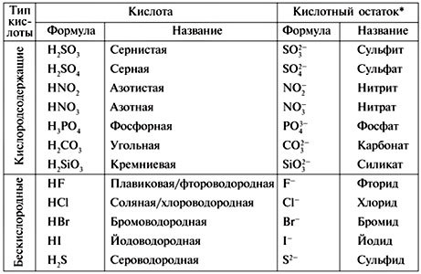 Подскажите формулы и названия кислот и кислотных остатков(нет таблицы в учебнике срочно надо спасибо зараннее)