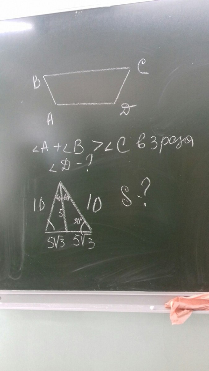 1) чтобы найти углы трапеции данных недостаточно. сумма внутренних углов четырехугольника равна 360°.