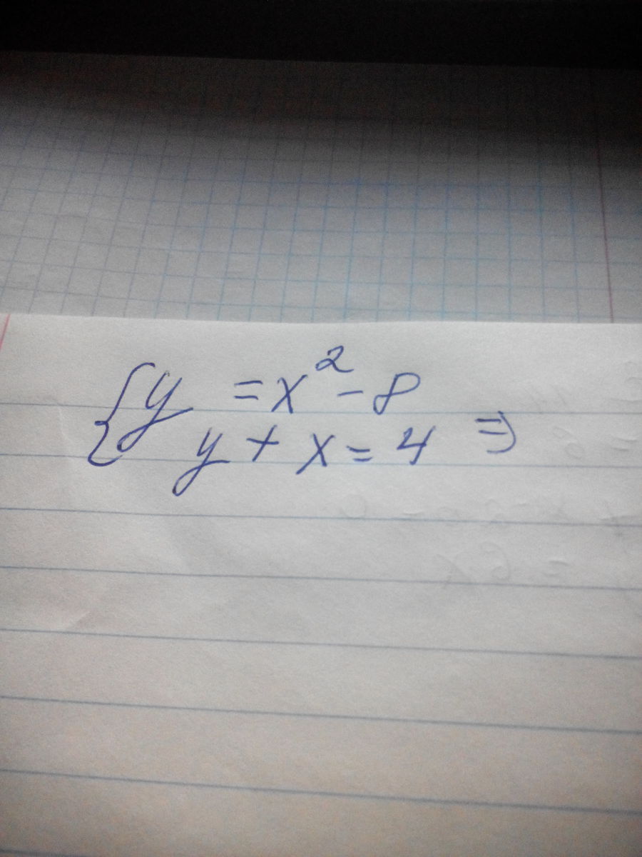 выражаем одно серез другое то есть y=4-x, подставляем в первое и получаем простое квадратное уравнение x^2+x-12