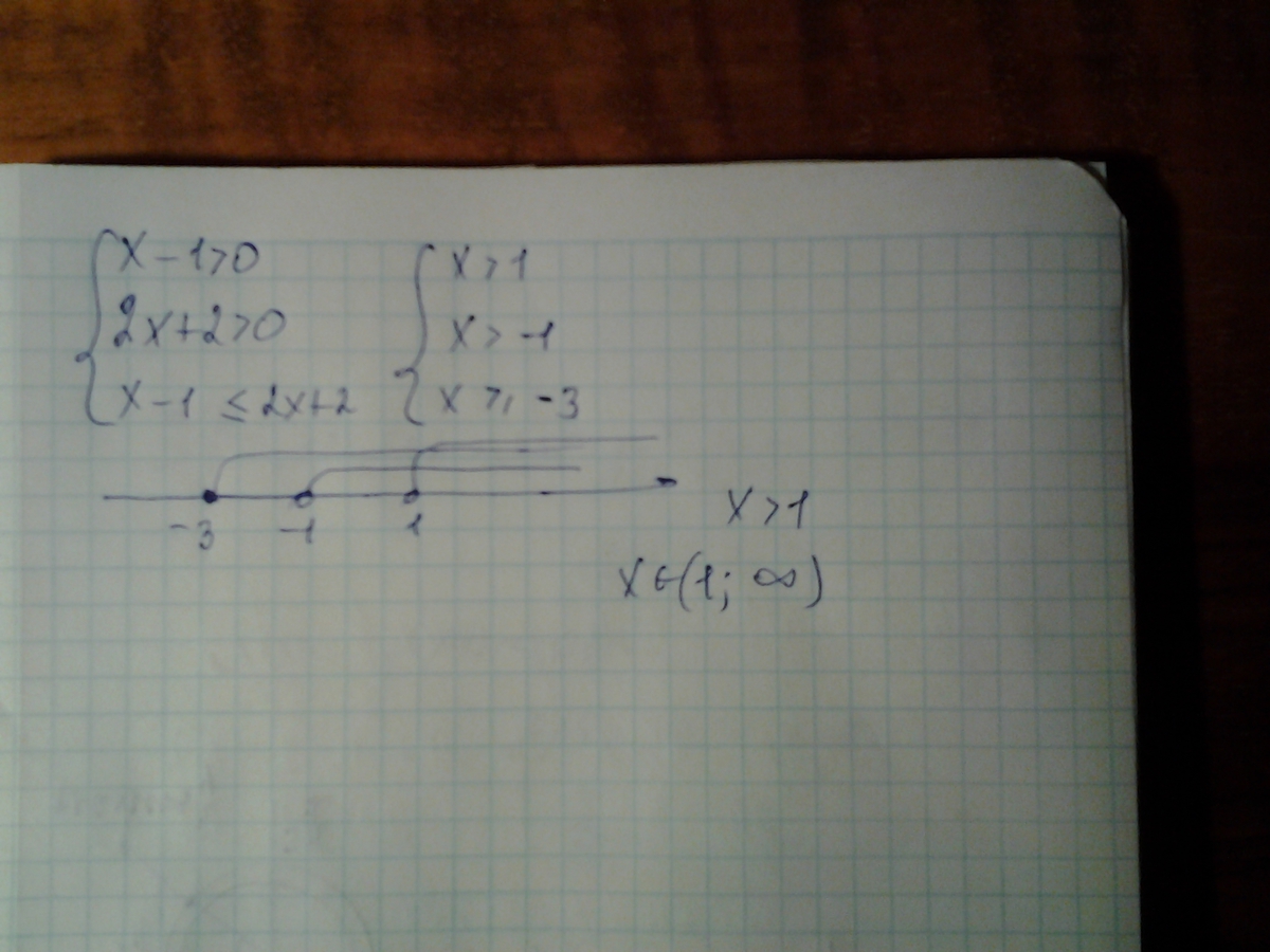 Применены свойства логарифмов. Когда основание меньше 1, то при сравнении подлогарифмических выражений знак меняется