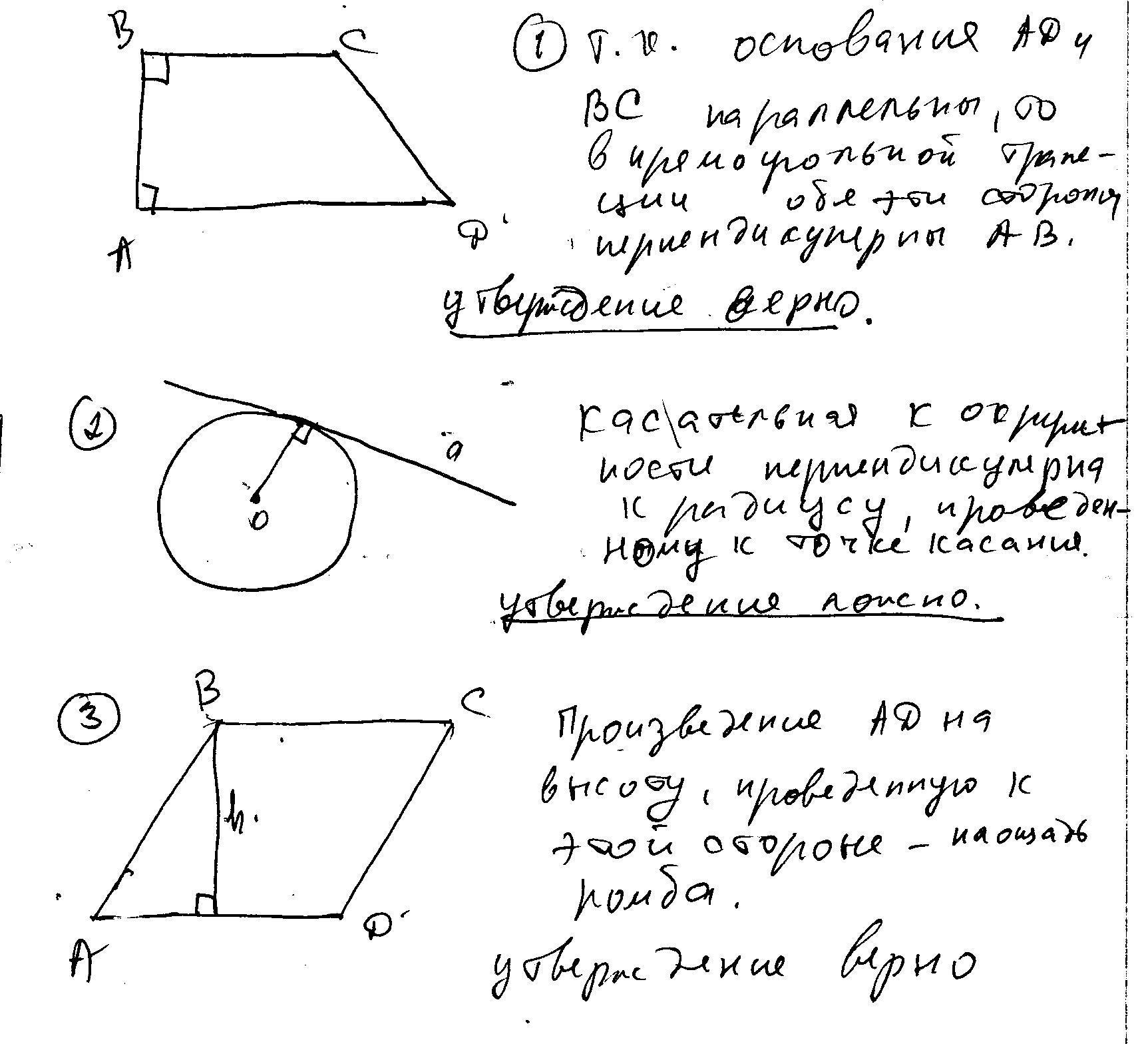 2) Касательная к окружности параллельна радиусу, проведенному в точку касания.