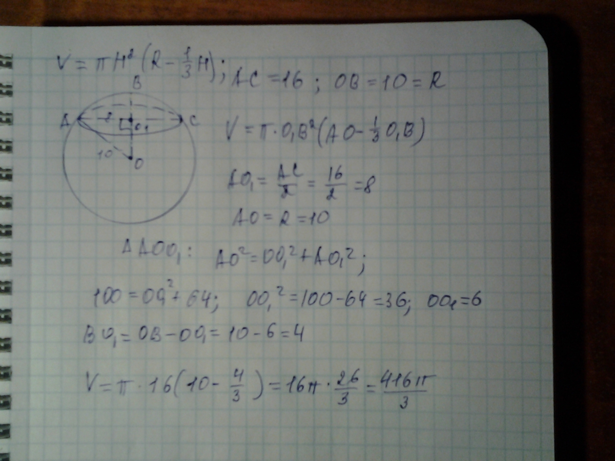 Применена формула объёма шарового сегмента