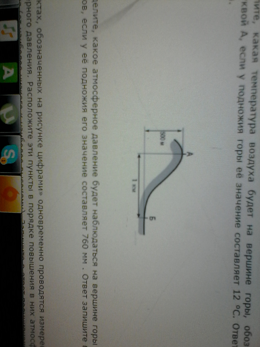 определите какая температура воздуха будет на вершине горы обозначенной на рисунке буквой А если у подножья горы её значение составляет 12 С.