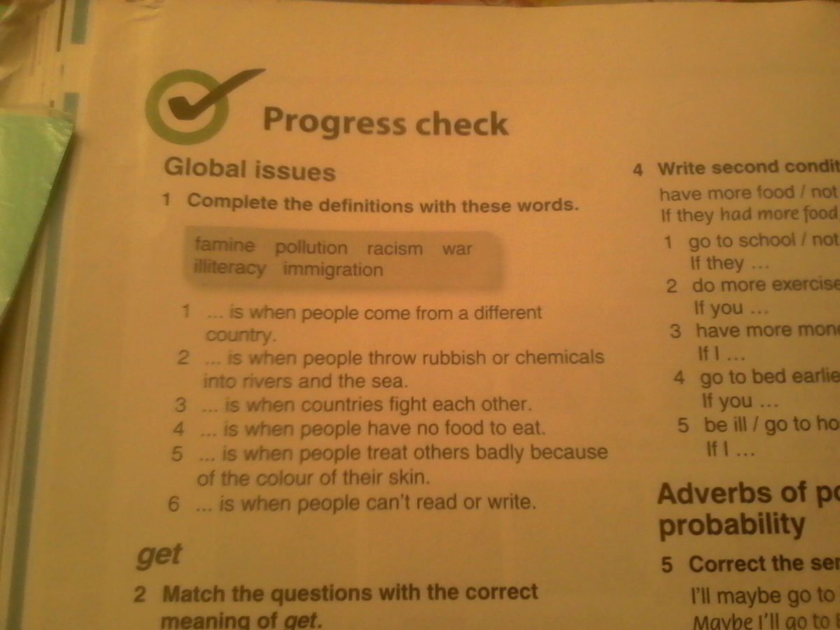 1 - immigration; 2 - pollution; 3 - war; 4 - famine; 5 - racism; 6 - illiteracy.