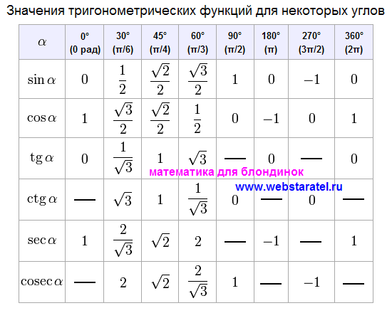 12п/6=cos2п=1 таблица тригонометрических функций