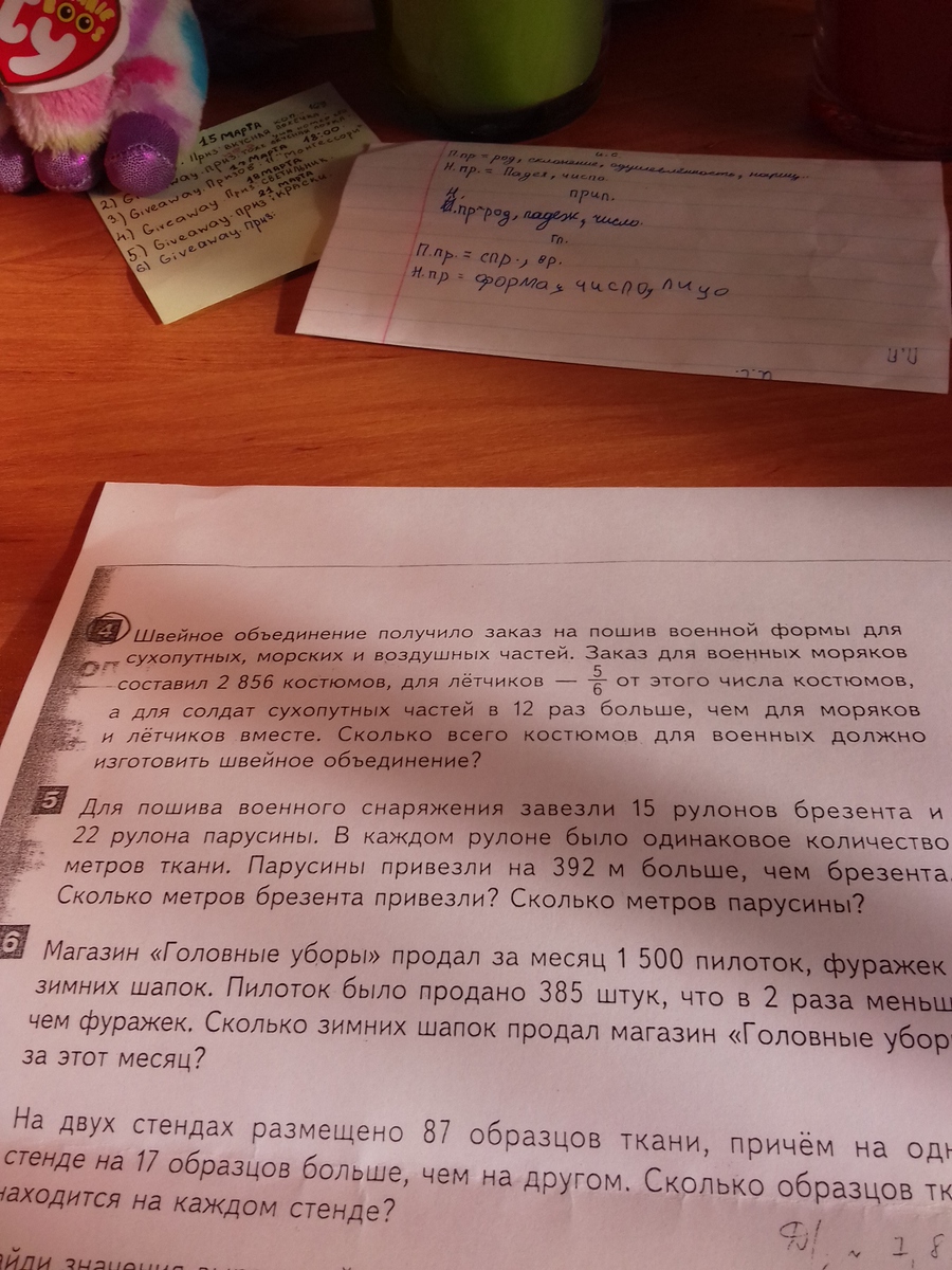 2) 2856+2380=5236 — костюмов для летчиков и моряков