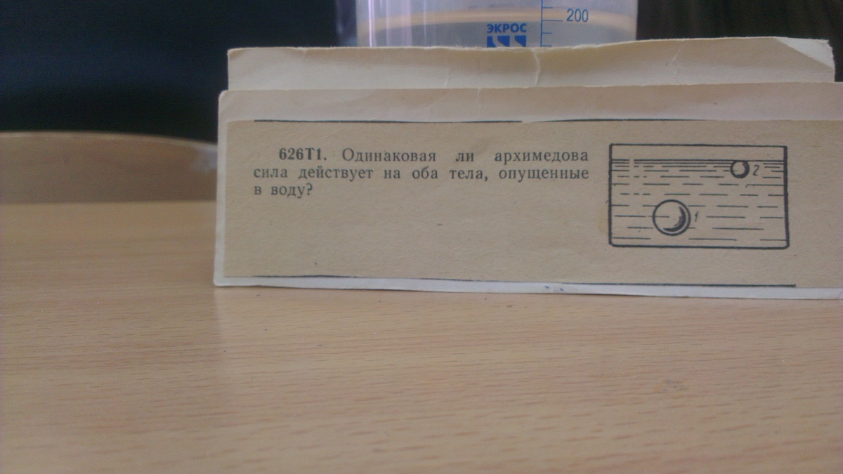 одинакова ли архимеда сила действует на оба тела, опущенное в воду?