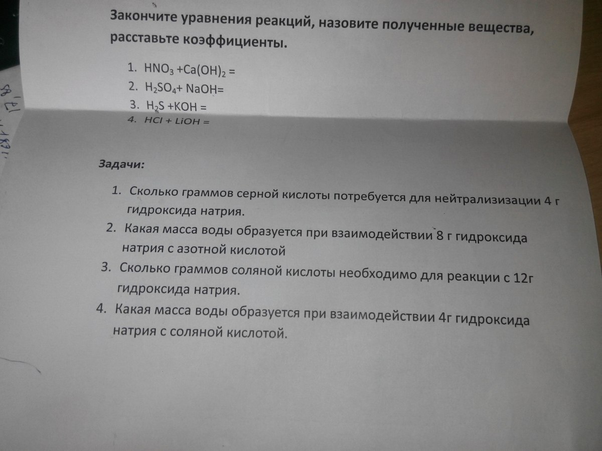 1)2HNO3+Ca(OH)2=Ca(NO3)2+H2O