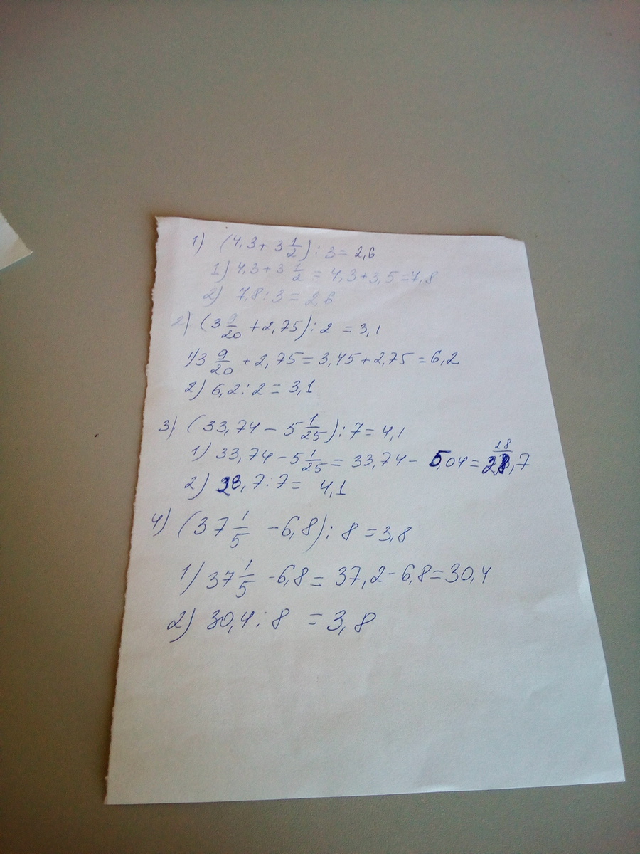 5. 1) 14,7+23,8=38,5 2)38,5:11=3,5. 6. 1)61,8-4,08=57,72 2) 57,72:12=4,81