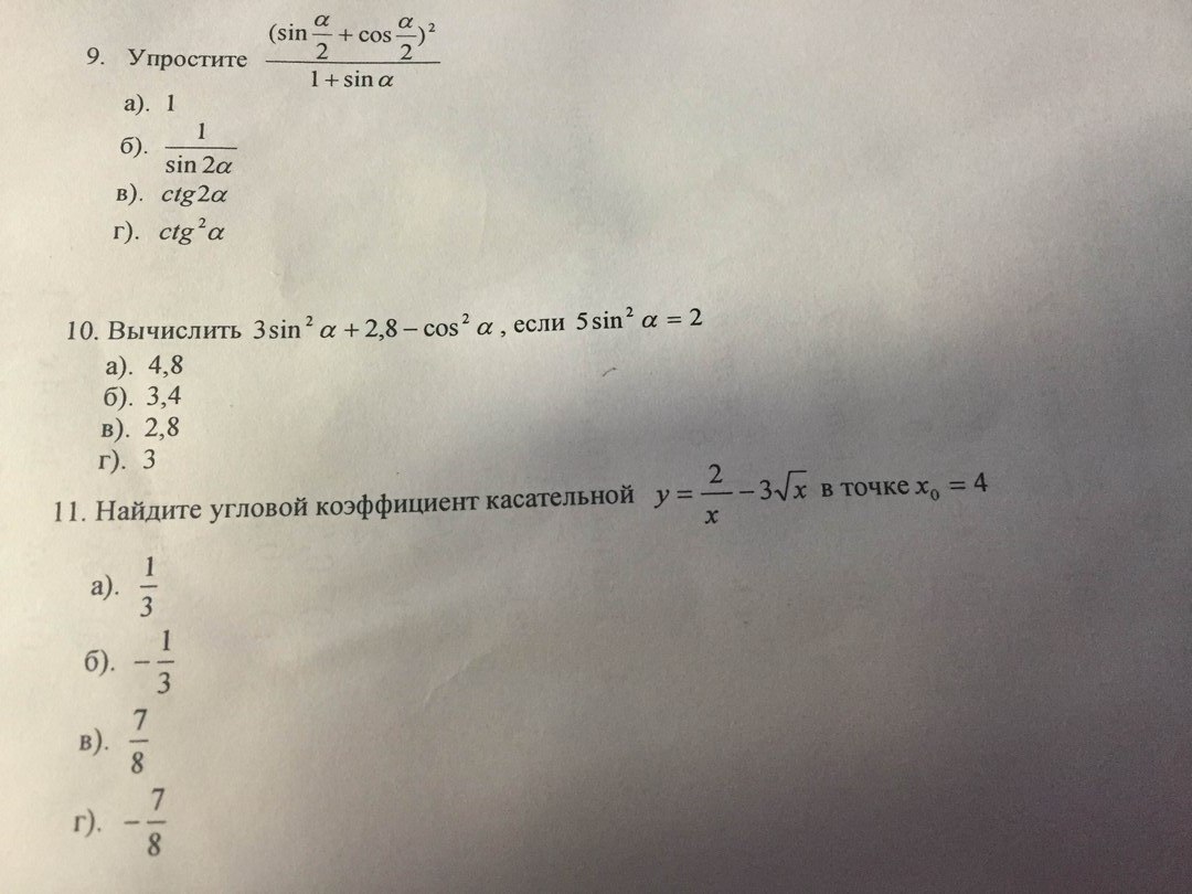 2) 3sin²α + 2,8 - cos²α 5sin²α = 2, sin²α = 2/5