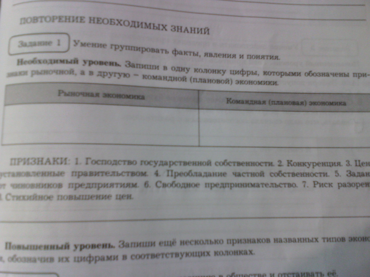 Запишите в одну колонку цифры,которыми обозначены признаки рыночной,а в другой- командной экономики.