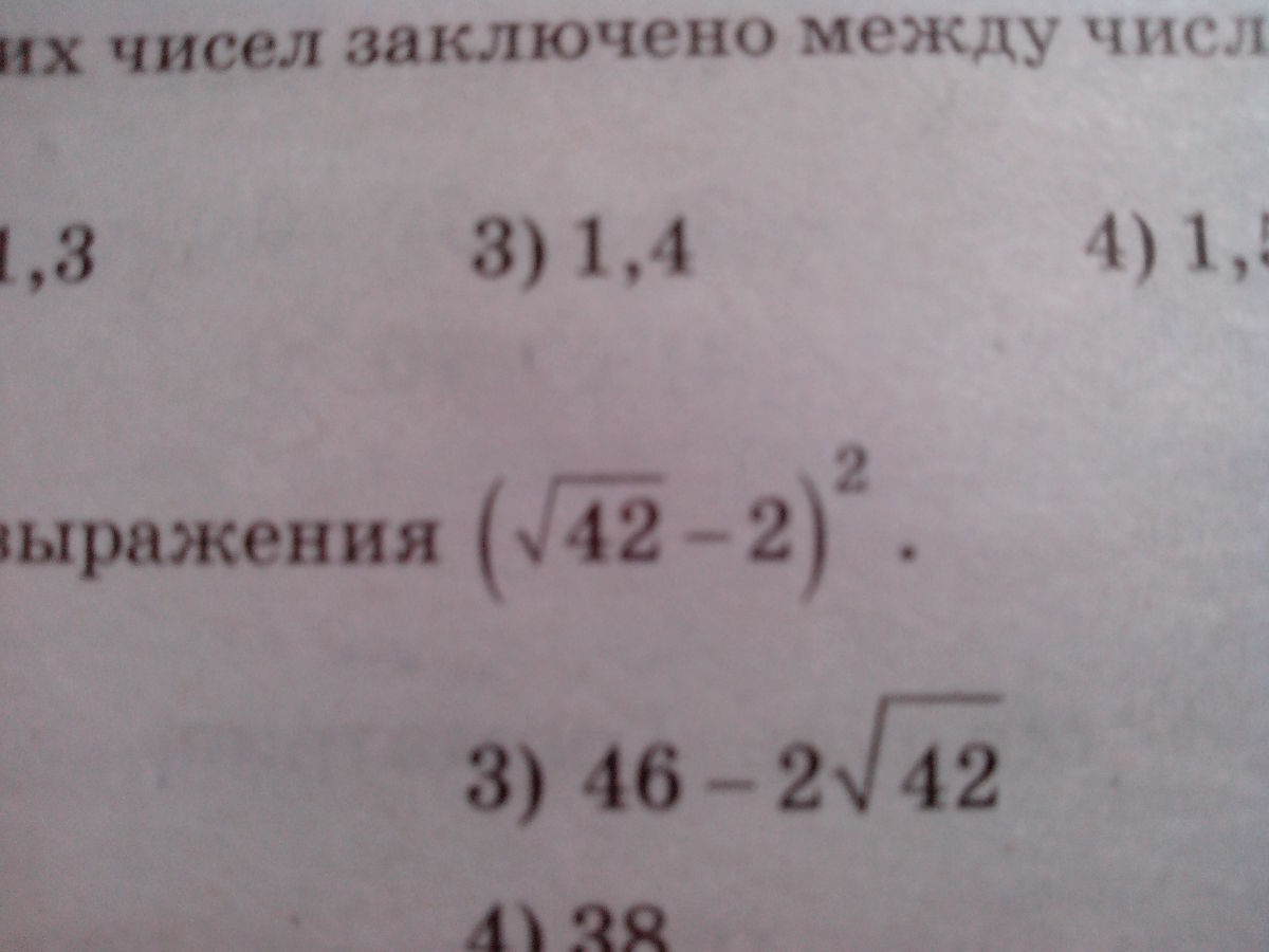по формуле Квадрат разности раскрываешь и будет ...Корень из 42 в квадрате - 2*2*корень из 42+2^2= 42- 4корня из 42+4 = 46 - 4 корня из 42