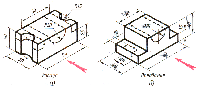 Чертежники помогите пожалуйста !!!!Помогите пожалуйста начертить главный вид, вид сбоку и вид сверху только по этому рисунку под цифрой б)-основание.