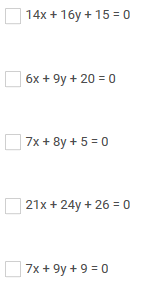 Из 5 предложенных уравнений прямых выберите 3 таких, что соответствующие прямые параллельны друг другу.