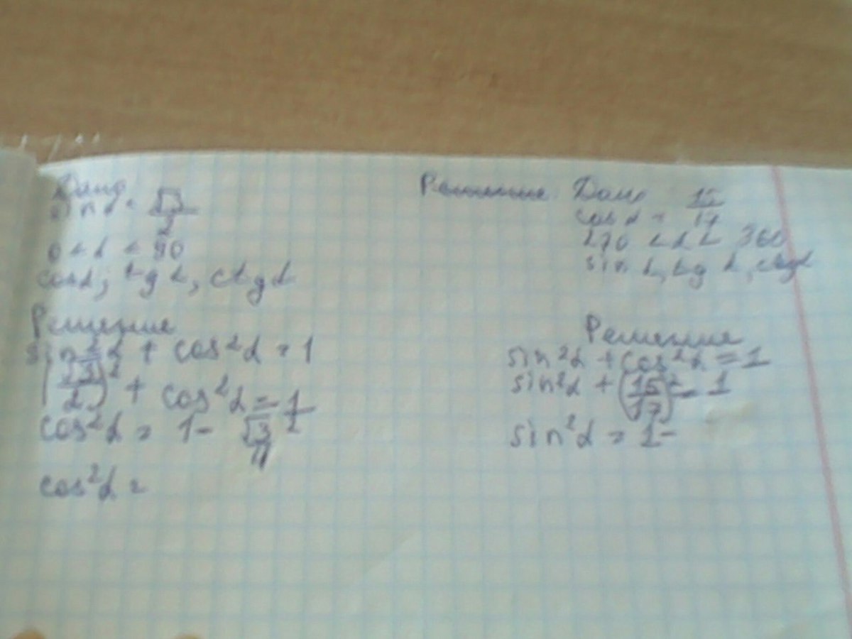 0°<α<90°т.к α ∈ I четверти, то cosα>0; tgα>0; ctgα>0.