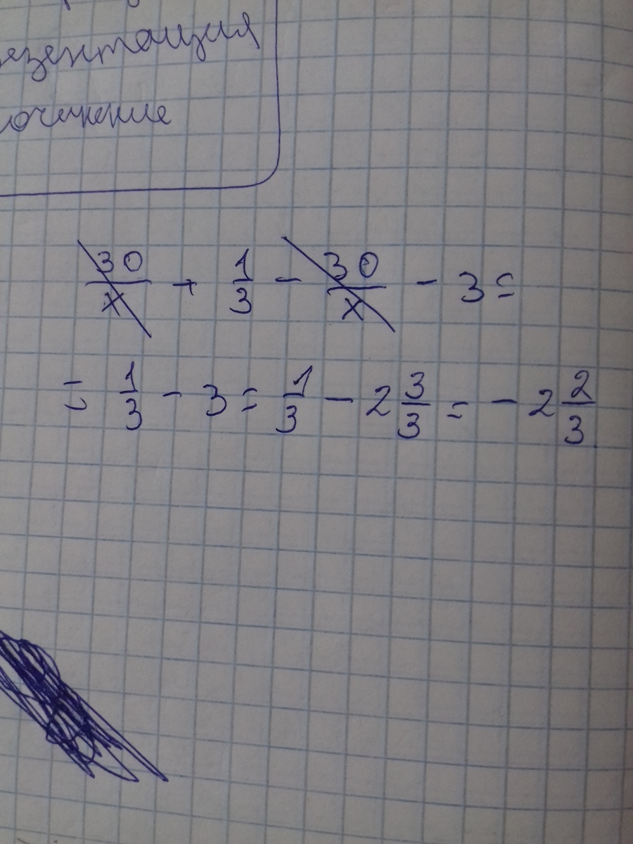 30/х+1/3-30/х-3=1/3-3=1/3-2целых3/3= -2целых2/3