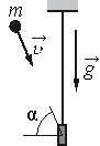 Помогите с задачей. Массивная доска шарнирно подвешена к потолку на лёгком стержне. На доску со скоростью 10 м/с налетает пластилиновый шарик массой 0,2 кг и прилипает к ней. Скорость шарика перед ударом направлена под углом 60° к нормали к доске (см. рисунок). Кинетическая энергия системы тел после соударения равна 0,625 Дж. Чему равна масса доски?