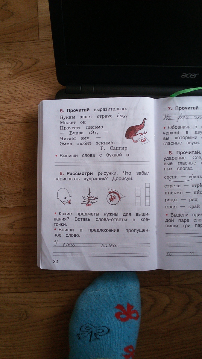 6 задание:дорисовать-хвост(не уверенна)иголки,иглу для вышивания