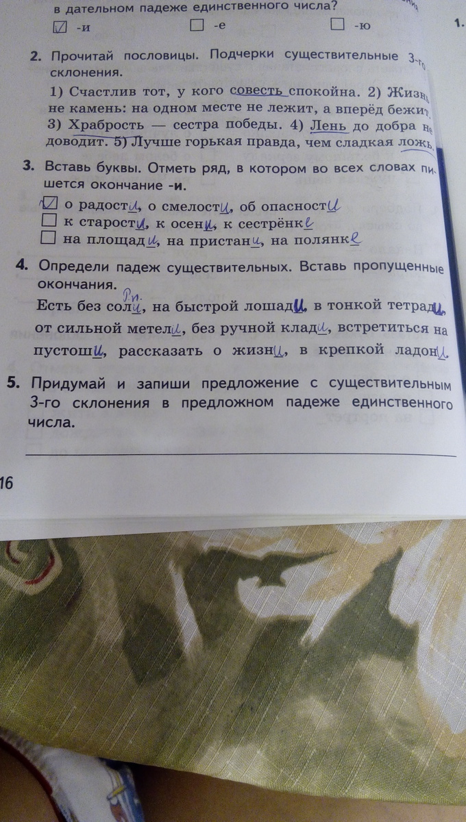 придумай и запиши предложение с существительным 3го склонения в предложном падеже