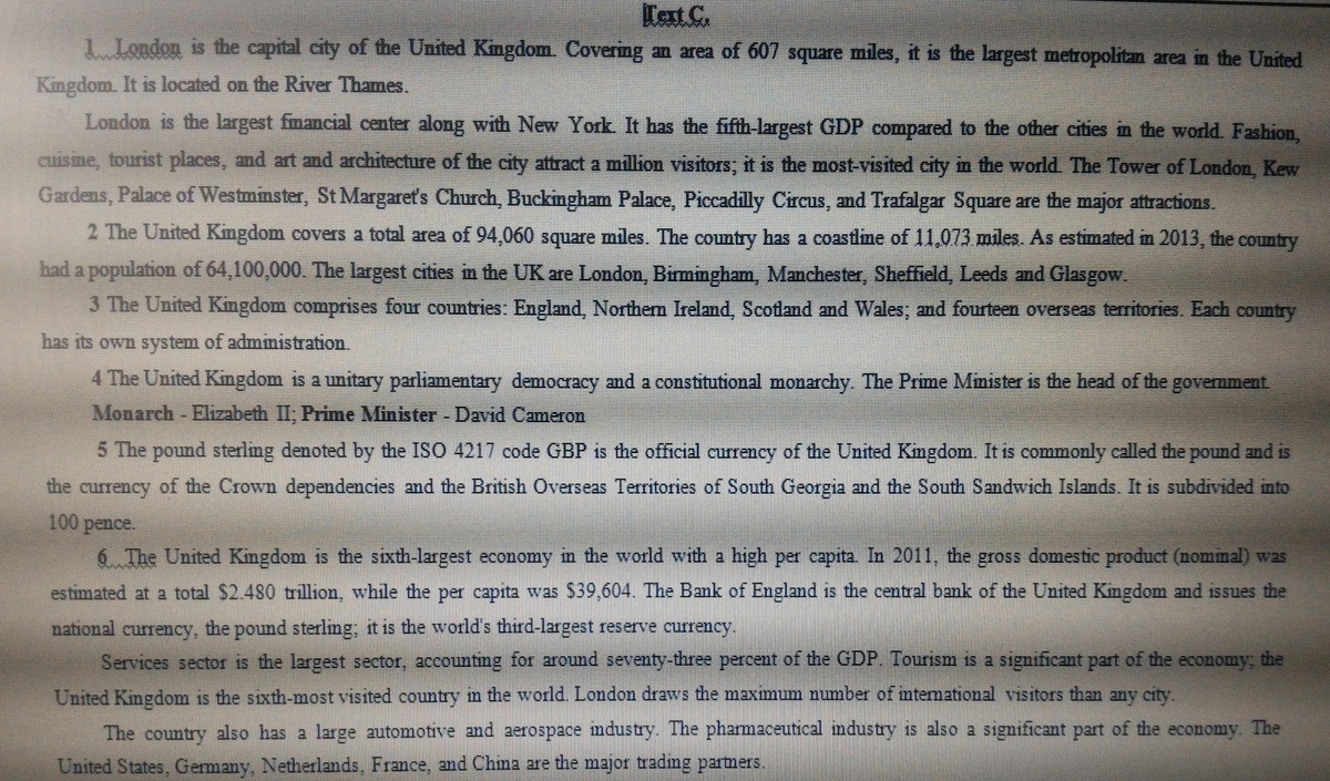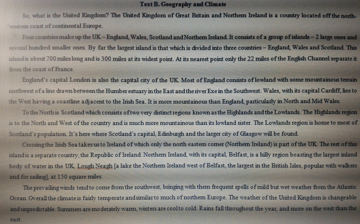 Из трёх текстов сделайте, пожалуйста, 15 предложений (на английском языке! тексты на фото). Что такое Великобритания, что входит в неё, какой климат, валюта и так далее. Самое основное. Чтобы
