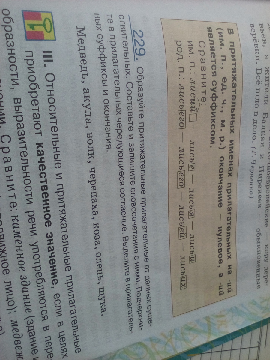 Большой медведь нулевое окончание,огромная акула окончание а,Милый волк нулевое окончание,маленькая черепаха окончание а,белая коза окончание а,красивый олень нулевое окончание,худая щука окончание а.