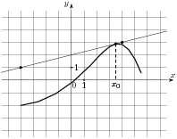 На рисунке изображён график функции и касательная к нему в точке с абсциссой . Найдите значение производной функции в точке .